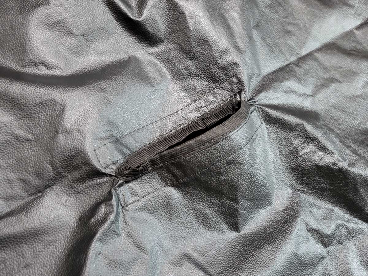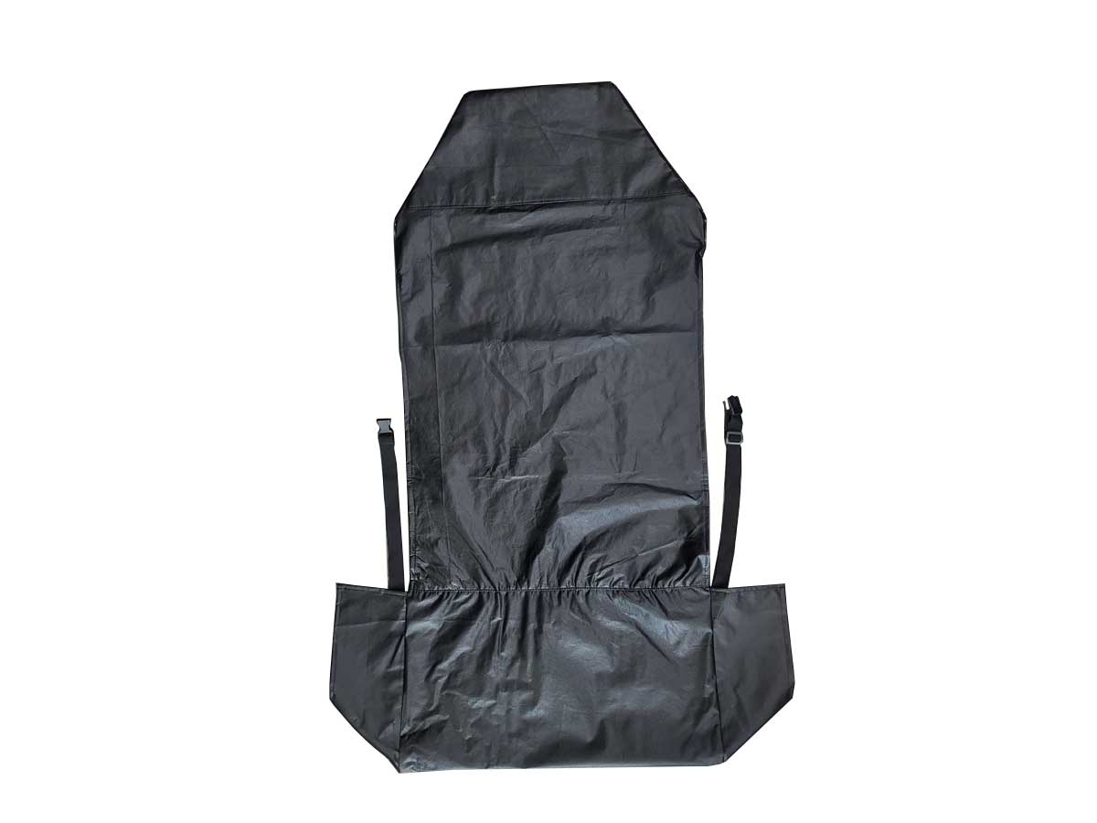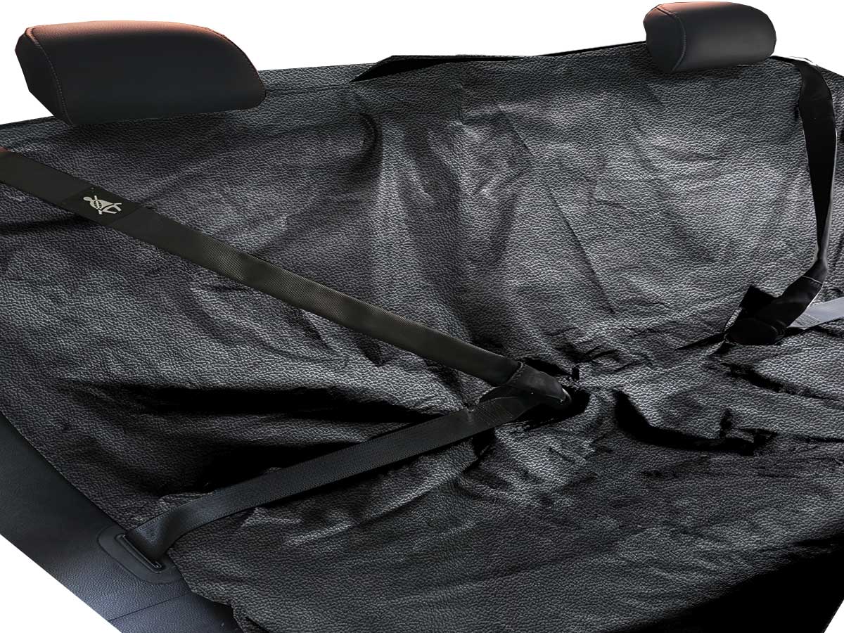 Já a capa para banco traseira possui 3 (três) aberturas para os encostos de cabeça, além de aberturas para os cintos de segurança com fechamento com velcro.