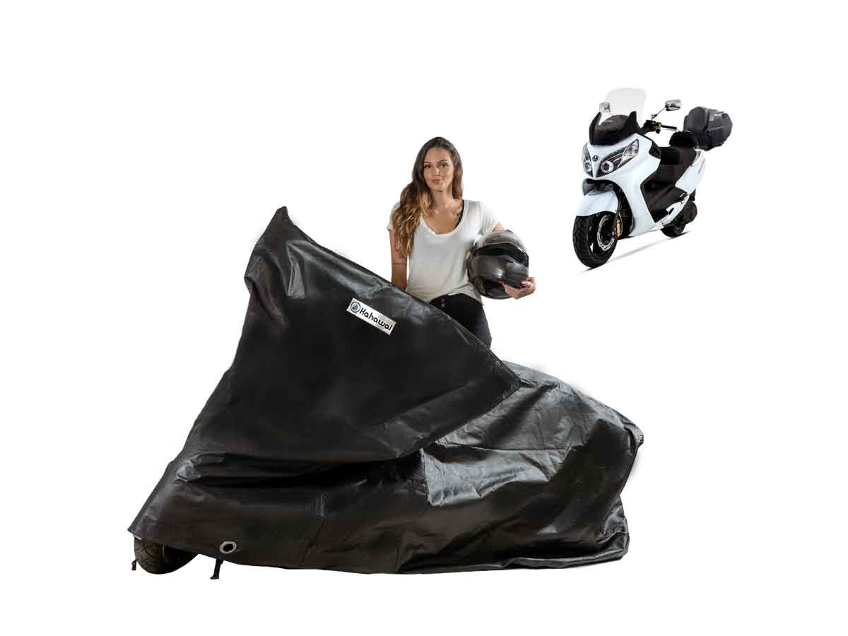 A Capa Cobrir Moto Chuva Sol Forrada Dafra Maxsym 400i com baú é resistente ao Sol, Chuva, Poeira e animais domésticos de pequeno porte, podendo ser utilizada em ambientes internos ou externos.