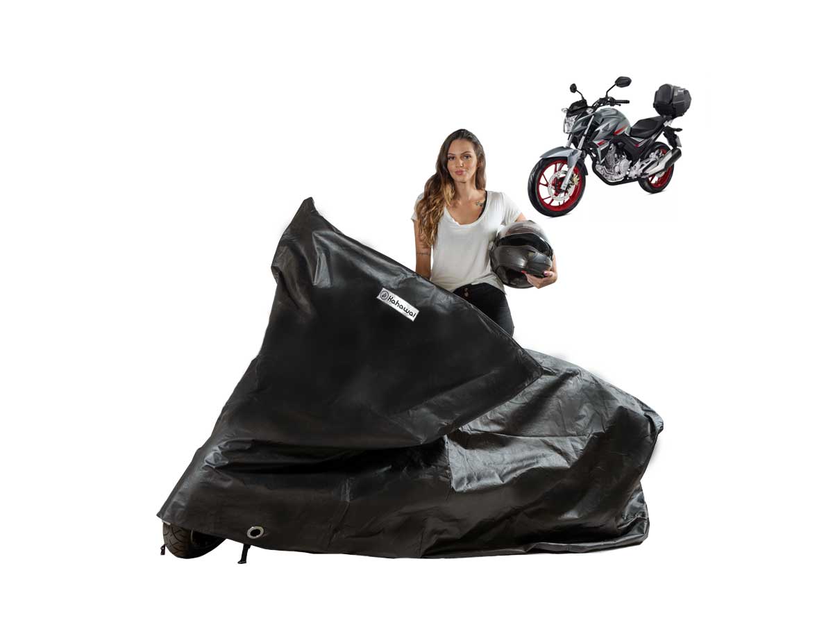 1. Capa Cobrir Moto Chuva Sol Forrada Honda Twister com baú com matéria prima de altíssima qualidade;