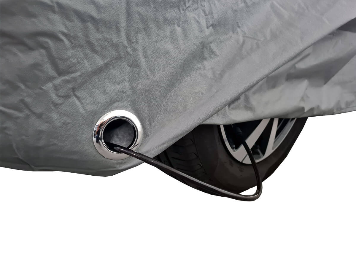 Capa de Cobrir Carro Impermeável Proteção U.V. Forrada Silver, desenvolvida com solda ultrassônica sem costura 100% impermeável, resistente ao Sol, Chuva, Poeira e animais domésticos de pequeno porte.