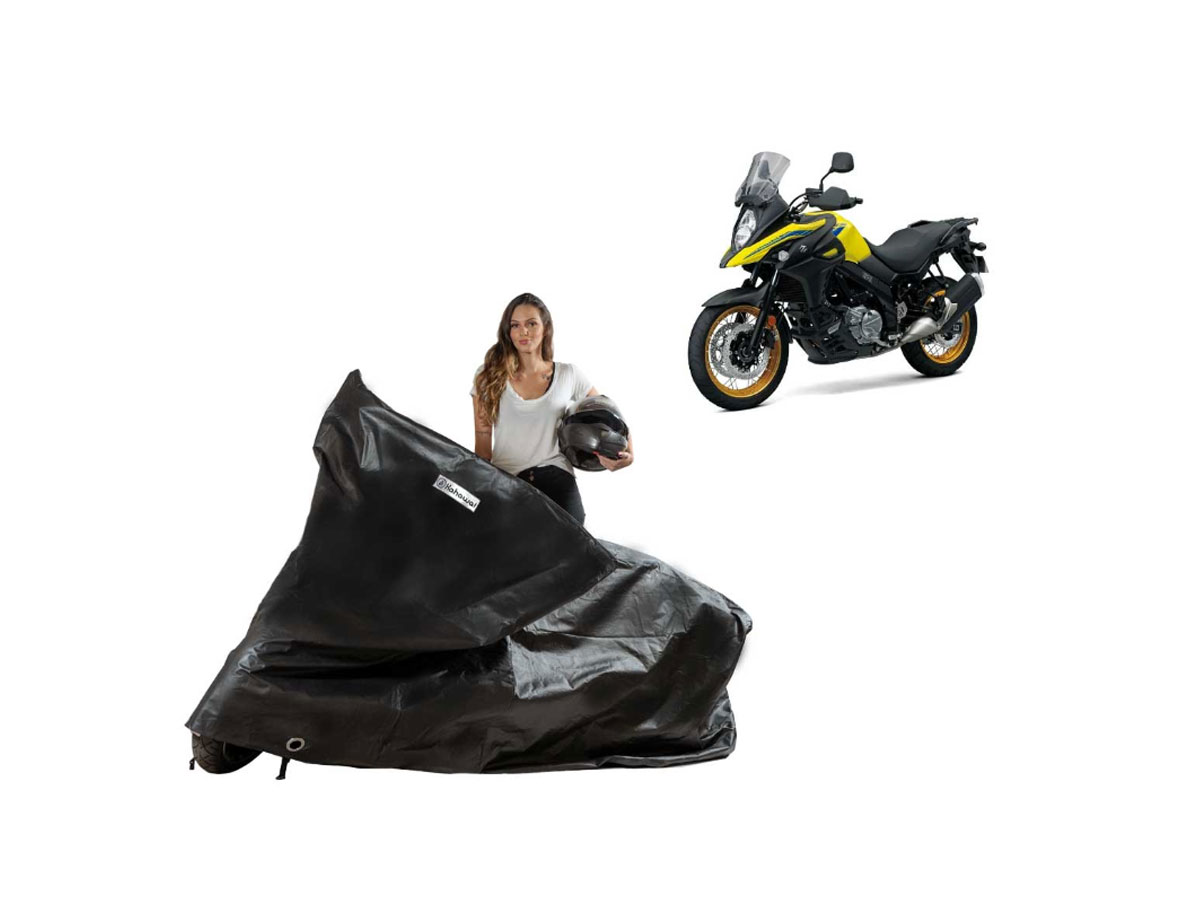 A Capa Impermeável Moto Suzuki Dl1000 V-strom é resistente ao Sol, Chuva, Poeira e animais domésticos de pequeno porte, podendo ser utilizada em ambientes internos ou externos.