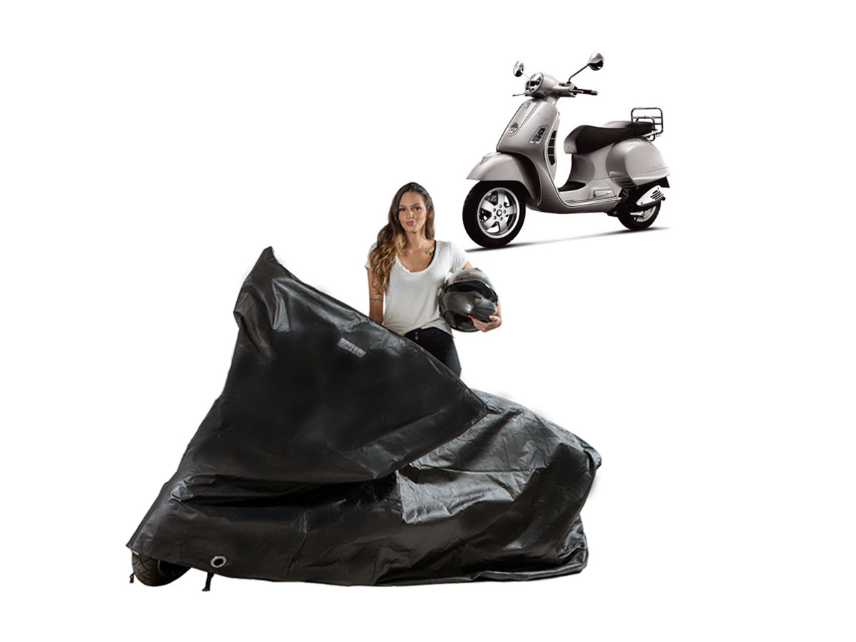 A Capa Impermeável Moto Vespa GTS 250 é resistente ao Sol, Chuva, Poeira e animais domésticos de pequeno porte, podendo ser utilizada em ambientes internos ou externos.