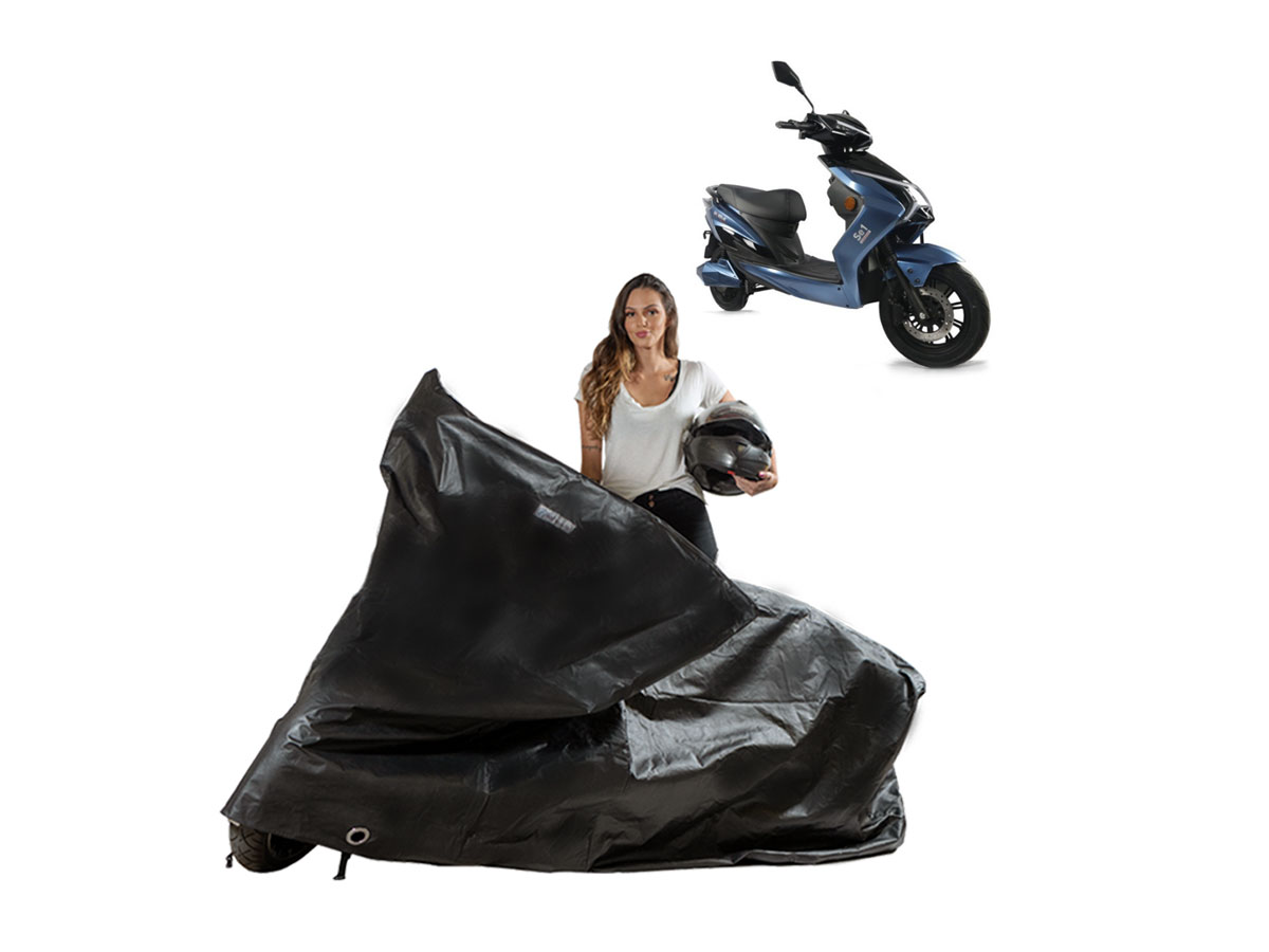 A Capa Impermeável Scooter Moto Elétrica Shineray SE1 é resistente ao Sol, Chuva, Poeira e animais domésticos de pequeno porte, podendo ser utilizada em ambientes internos ou externos.