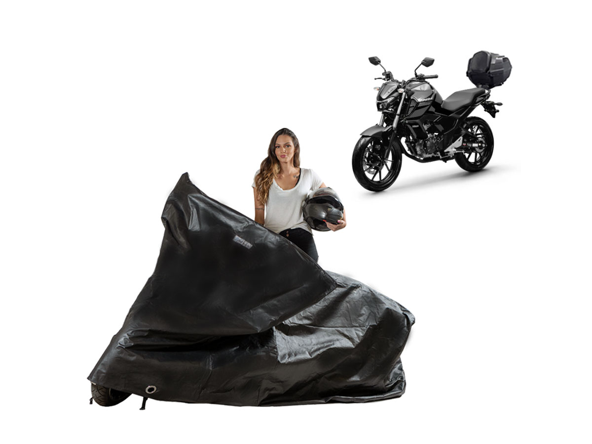 1. Capa Proteção Moto Yamaha Fazer FZ15 Com Baú Bauleto com matéria prima de altíssima qualidade;