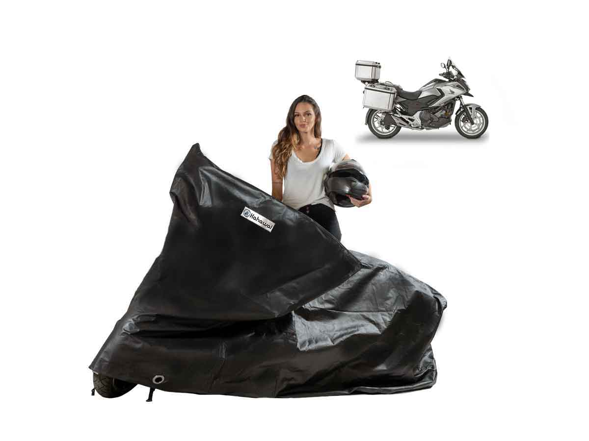 A Capa Protetora Honda NC 750-X com baú / bauleto é resistente ao Sol, Chuva, Poeira e animais domésticos de pequeno porte, podendo ser utilizada em ambientes internos ou externos.