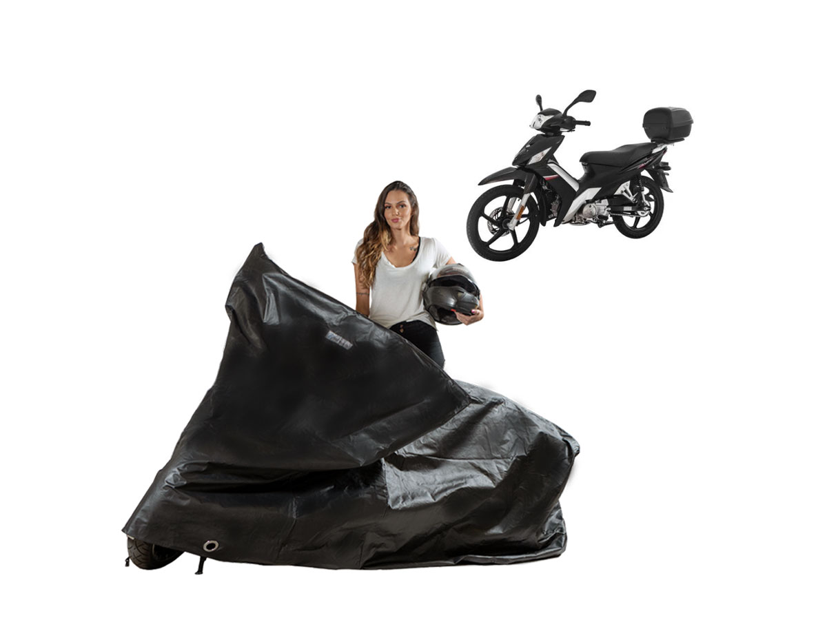 A Capa Protetora Impermeável Forrada Haojue Nex 115 com Baú é resistente ao Sol, Chuva, Poeira e animais domésticos de pequeno porte, podendo ser utilizada em ambientes internos ou externos.
