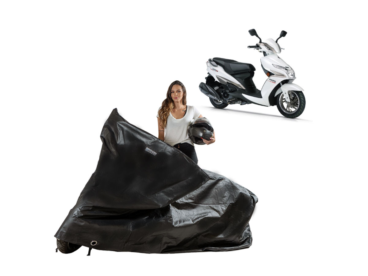A Capa Protetora Impermeável Forrada Haojue VR 150 é resistente ao Sol, Chuva, Poeira e animais domésticos de pequeno porte, podendo ser utilizada em ambientes internos ou externos.