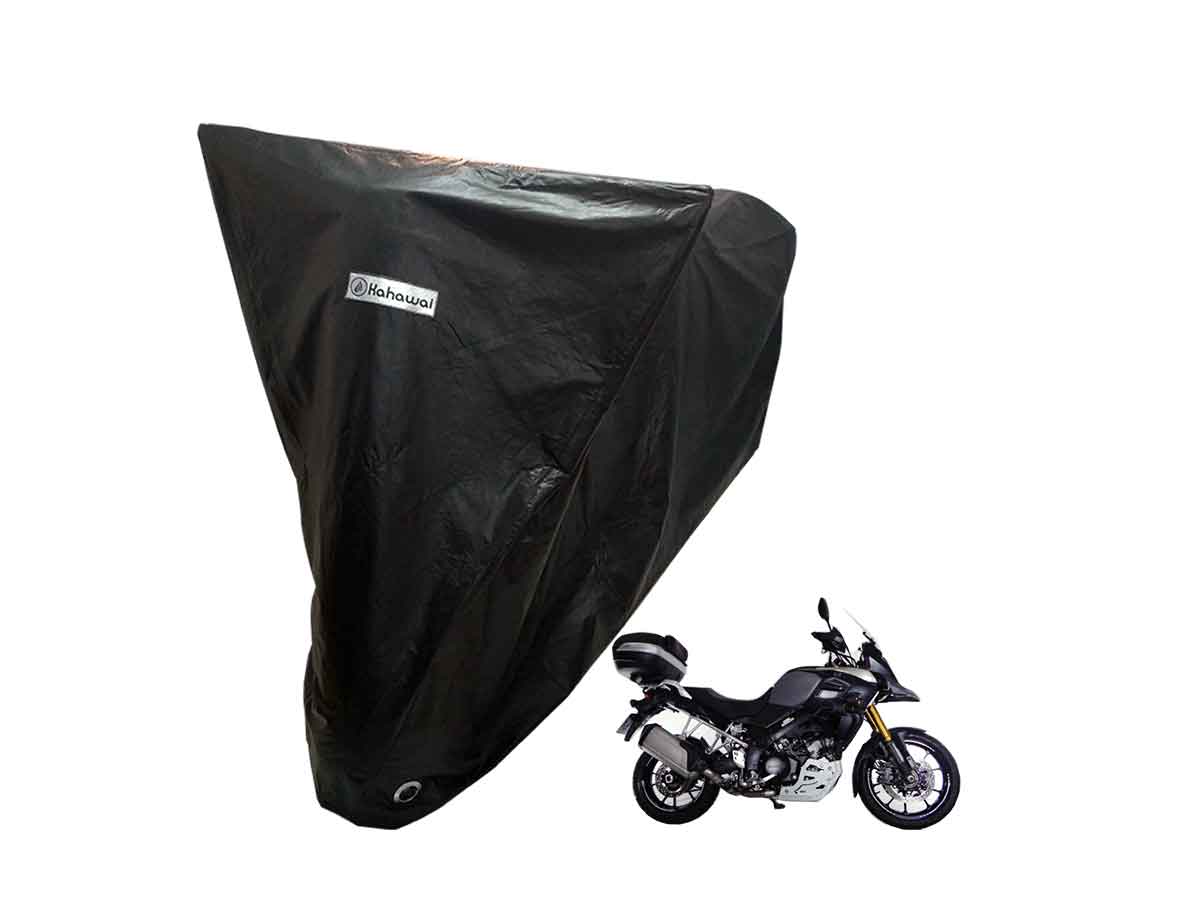 A Capa Protetora Moto Suzuki V-Strom com baú / bauleto é resistente ao Sol, Chuva, Poeira e animais domésticos de pequeno porte, podendo ser utilizada em ambientes internos ou externos.