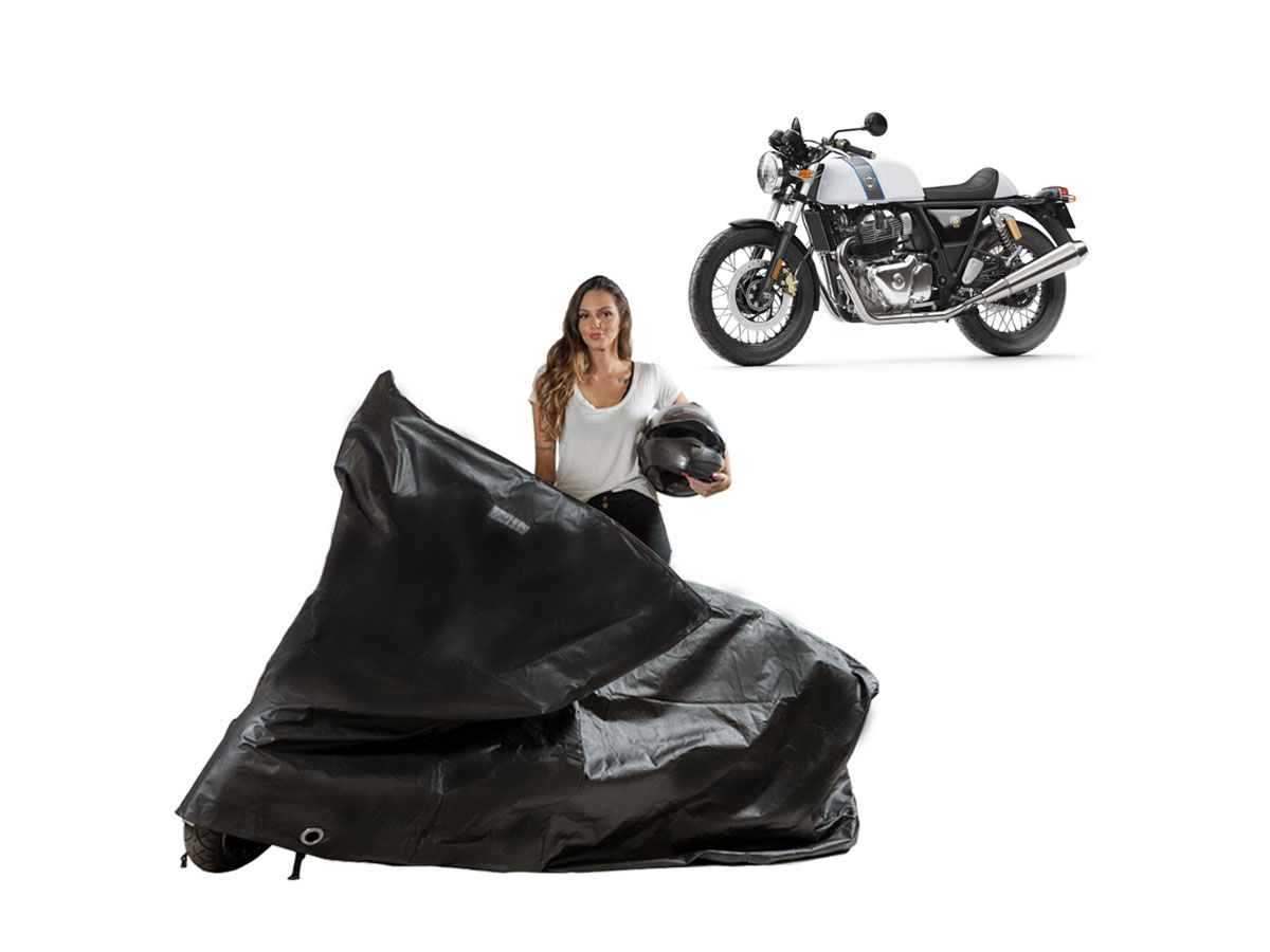 A Capa Protetora Royal Enfield Continental GT 650 é resistente ao Sol, Chuva, Poeira e animais domésticos de pequeno porte, podendo ser utilizada em ambientes internos ou externos.