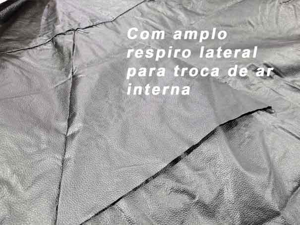 Para evitar o efeito estufa interno, a capa possui amplo respiro lateral, protegendo e conservando a pintura do veículo.