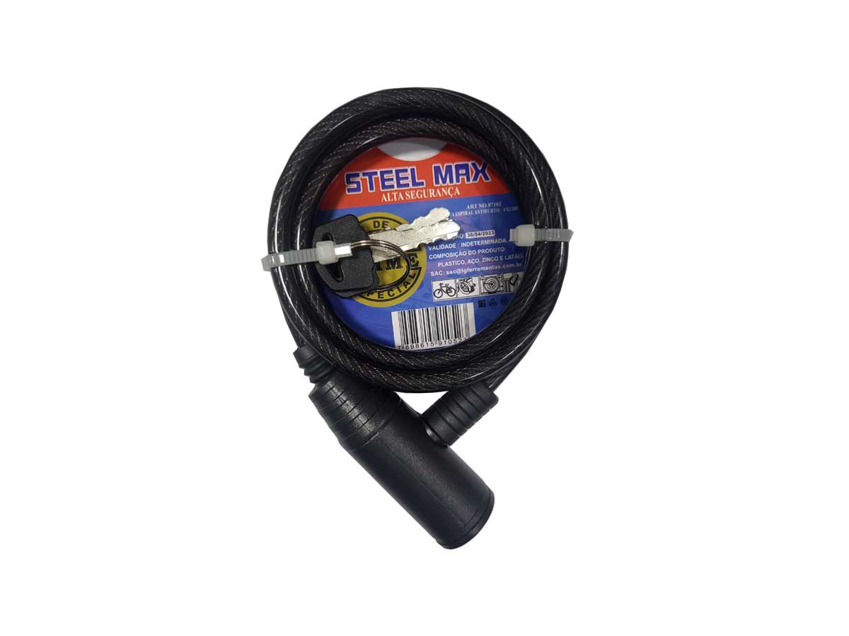 Trava Cabo De Aço Cadeado Segurança Bike Moto Carro Com Chave Espiral Anti-Roubo 1,20m